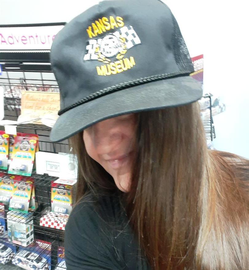 $8.00 – Kansas Auto Racing Museum Black Trucker Cap with embroidered logo, snap closure